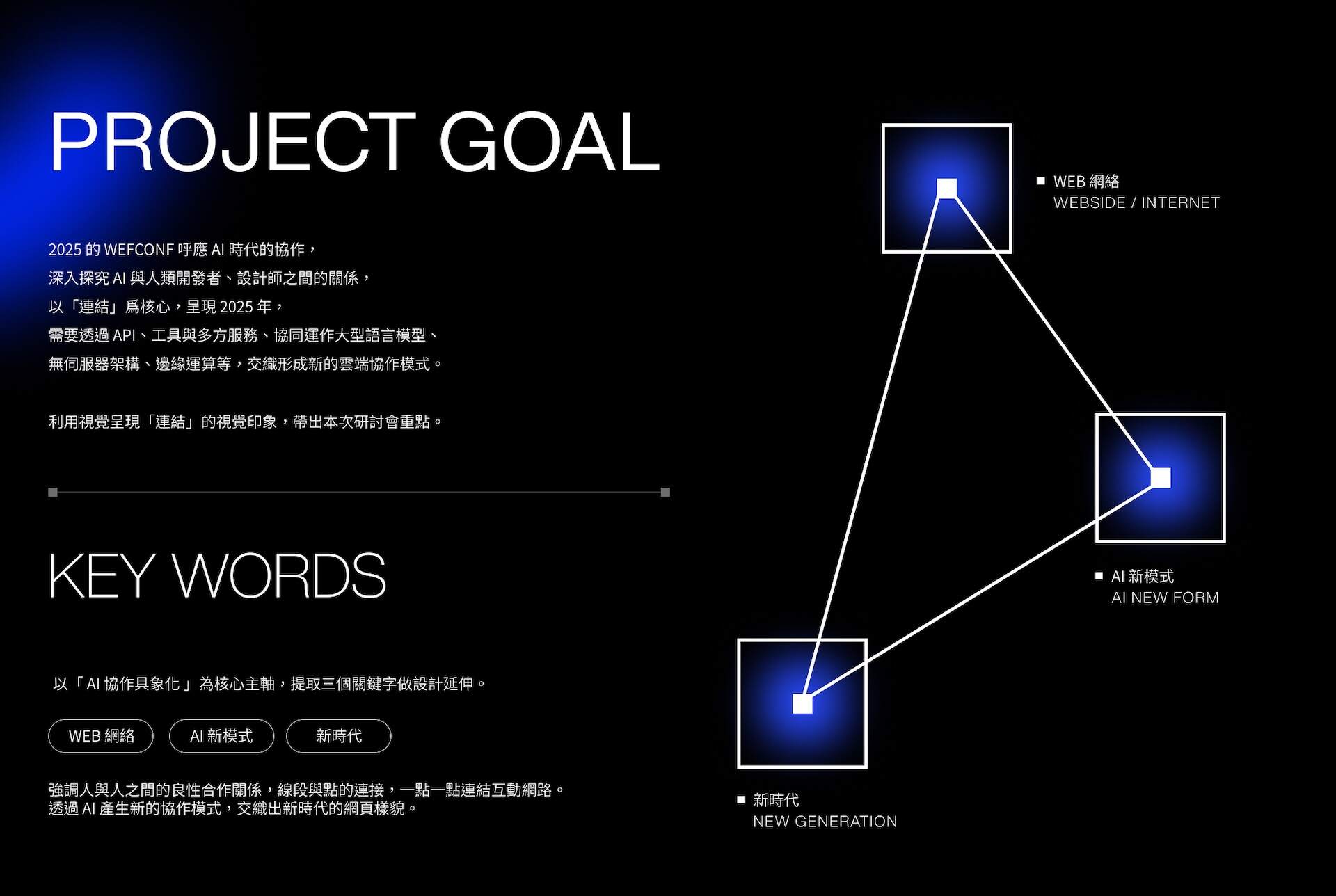 2025 WebConf Taiwan 將以「Connection|連結」作為核心,藉由議程串聯起人、程式、產品與 AI,回望技術演進、聚焦前沿趨勢。並希望可以沿用過往常用「網」的形象,來作為此次的主視覺主體。