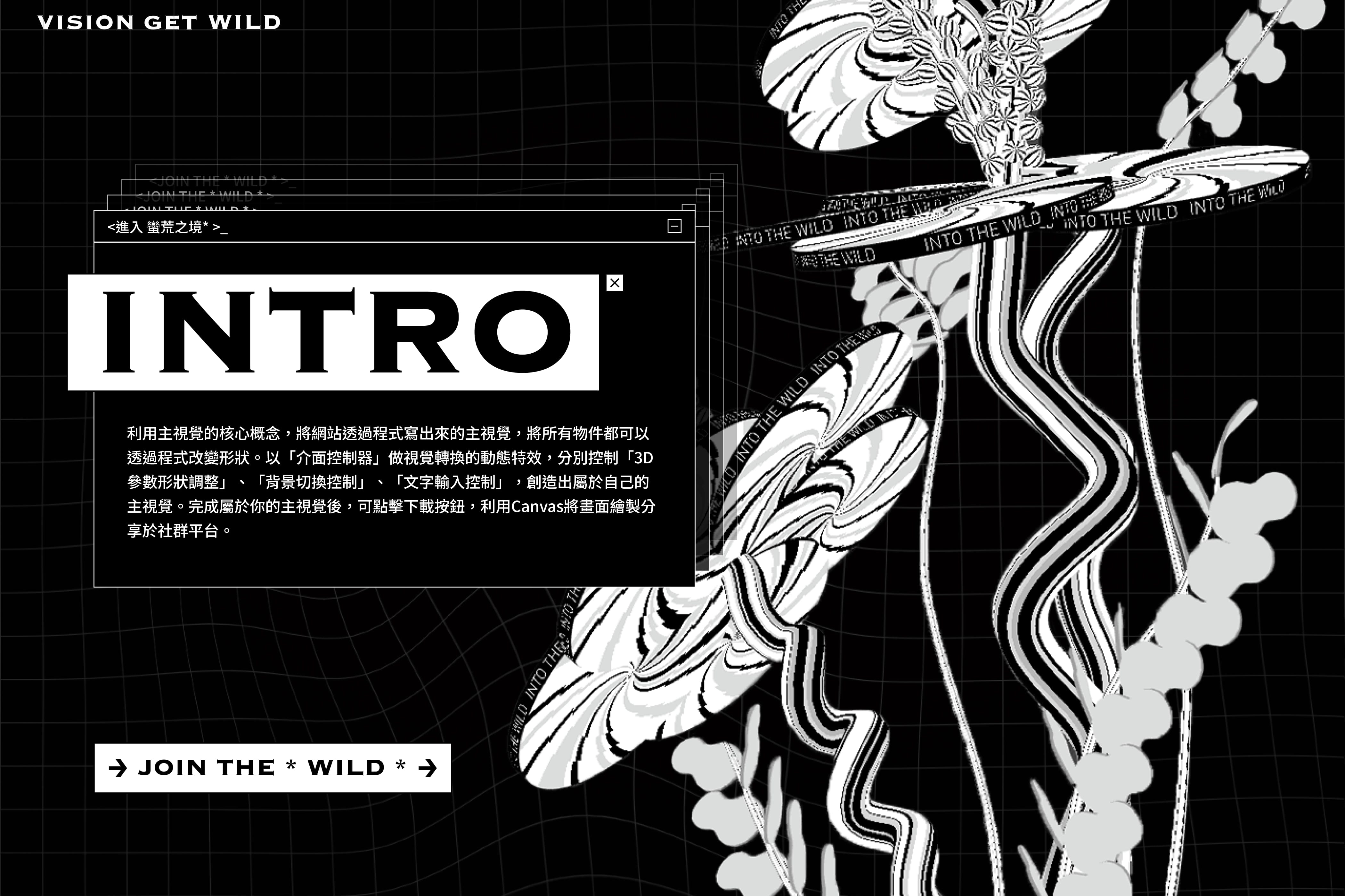 左下角「JOIN THE WILD」按鈕點擊後會先出現相關視覺動畫再離開畫面,這種 Delay link 的做法是個非常好傳達「額外資訊」與「氛圍營造」的效果,未來我們會有更多的應用!