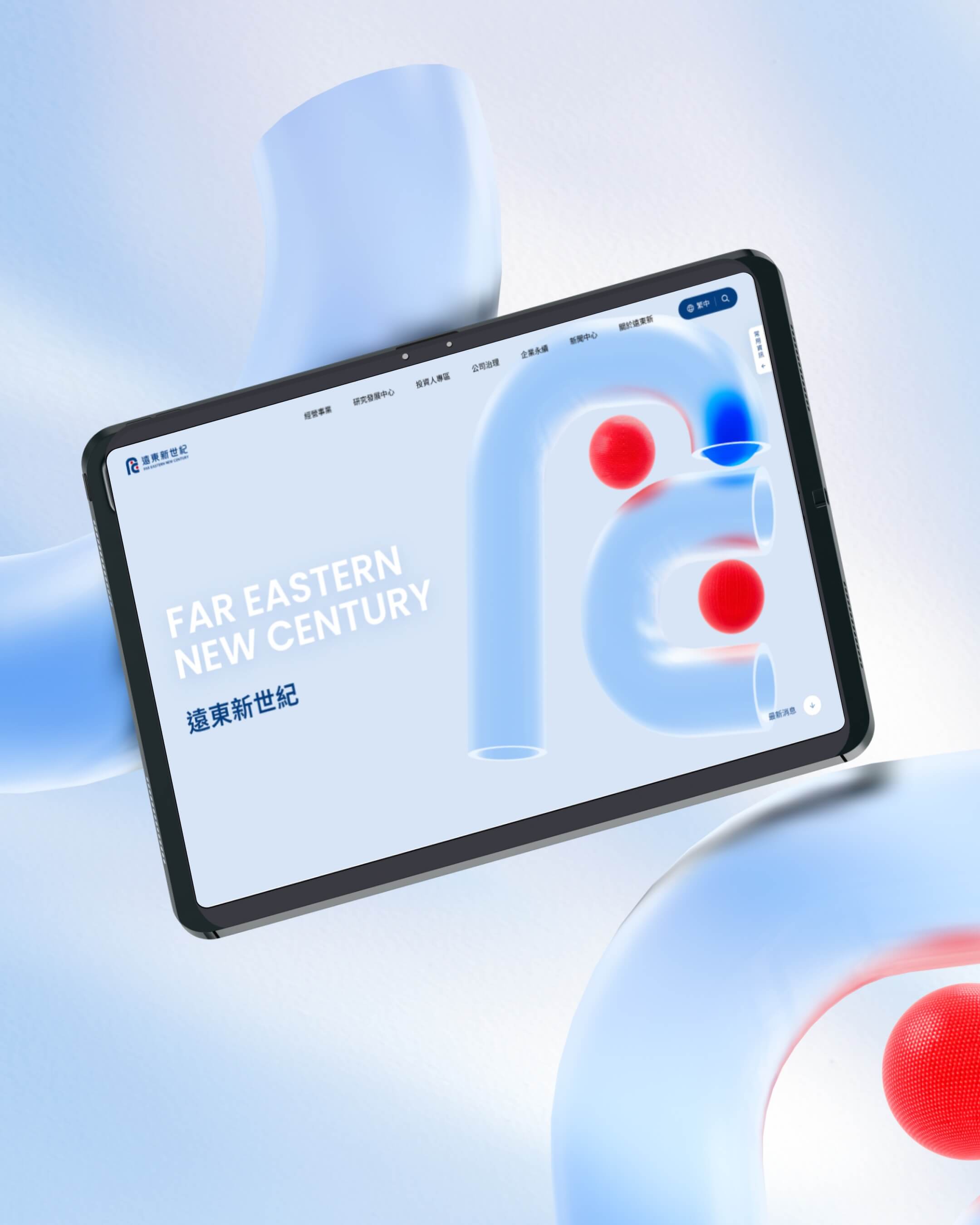 遠東新世紀新版官網不僅是企業資訊的整合平台,更是一個將材料語言轉化為企業形象的數位介面。 網站以精簡結構與流暢互動為原則,以3D材質的延展性作為策略核心,透過光影、透度與形體的變化,將遠東新世紀的三大事業體具象化,讓資訊的傳達如材料般自然流動,同時保有遠東新世紀一貫的理性氣質。