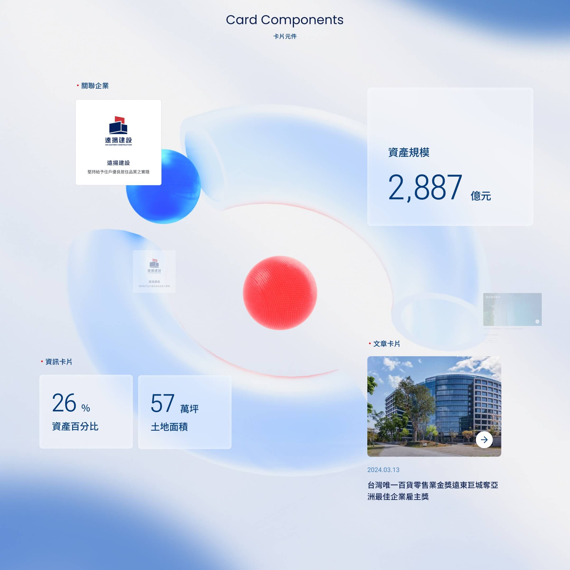 – 轉投資事業:不斷上升的球體,象徵事業的持續攀升。