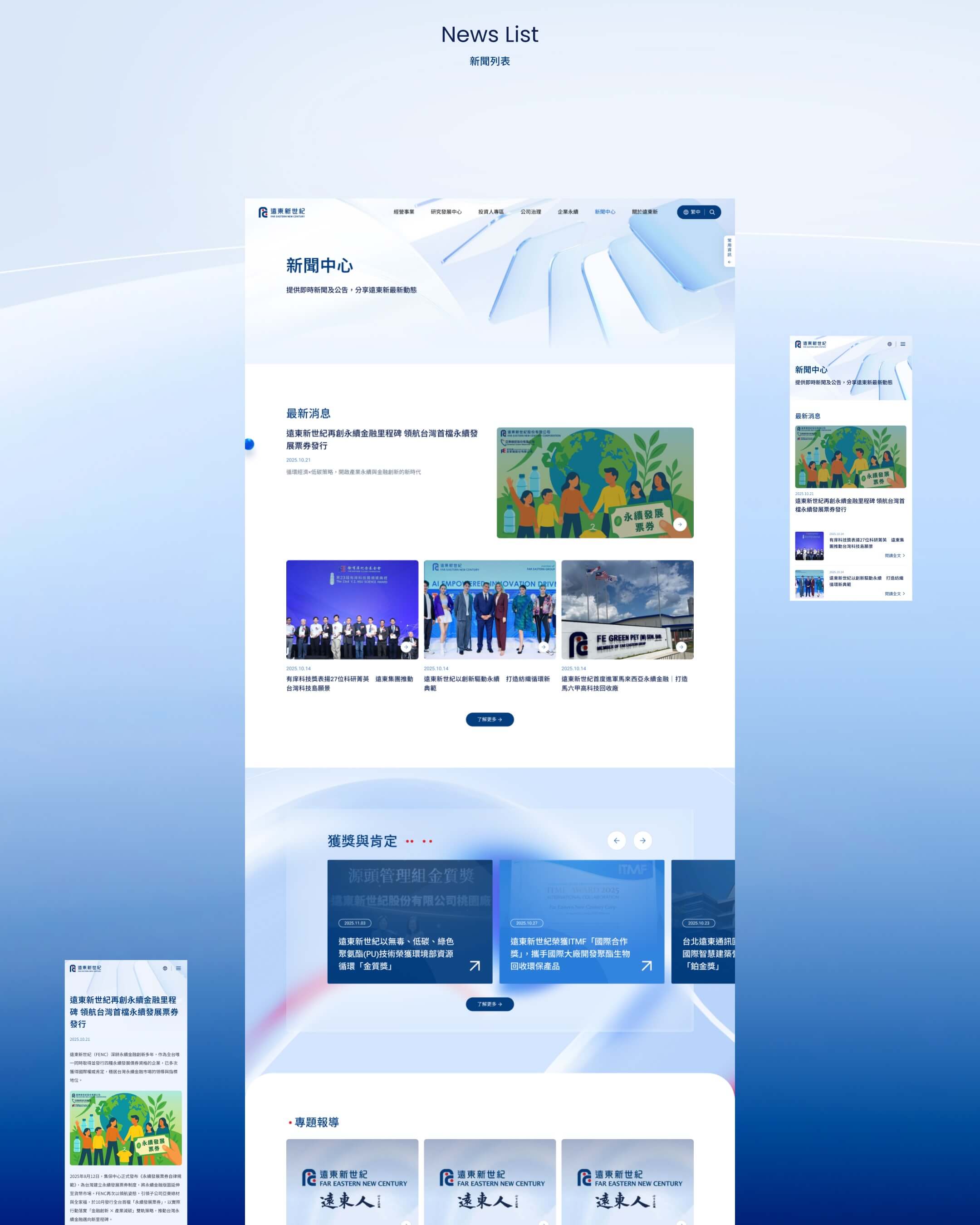 在使用體驗上,網站以精簡結構與流暢互動為原則,讓資訊的傳達如材料般自然流動,同時保有遠東新世紀一貫的理性氣質。
