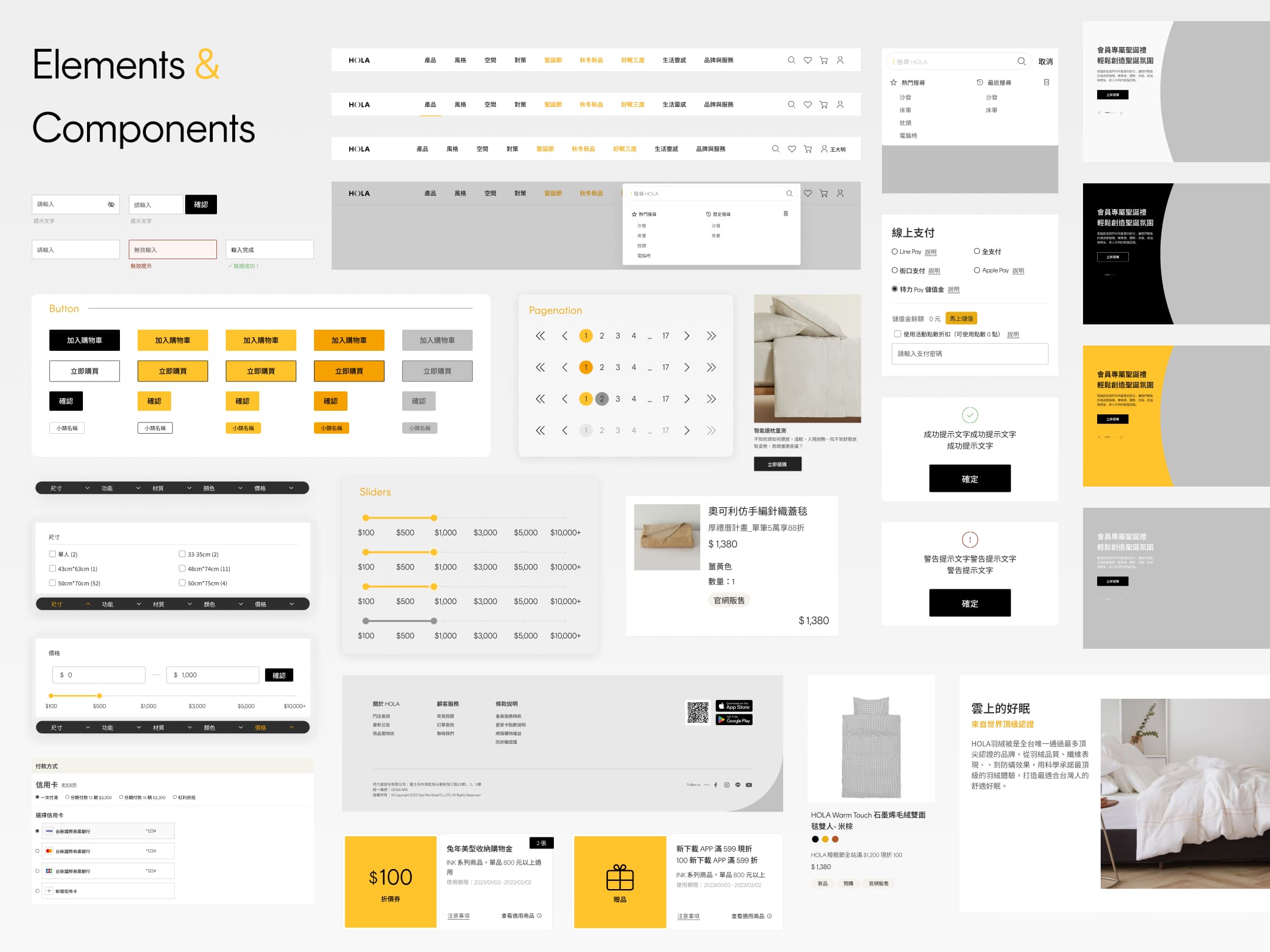並因應電商檔期活動需求,可自由組合不同模組,在設計過程中我們針對每個模組、元件都設定了詳細使用規範以便客戶後續延伸應用至其他平台。